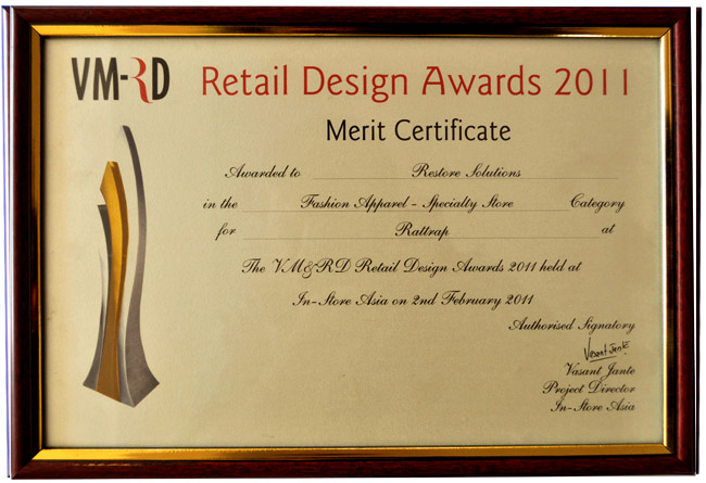 - VMRD RETAIL DESIGN AWARD 2011- BEST SHOP FITTING – RATTRAP