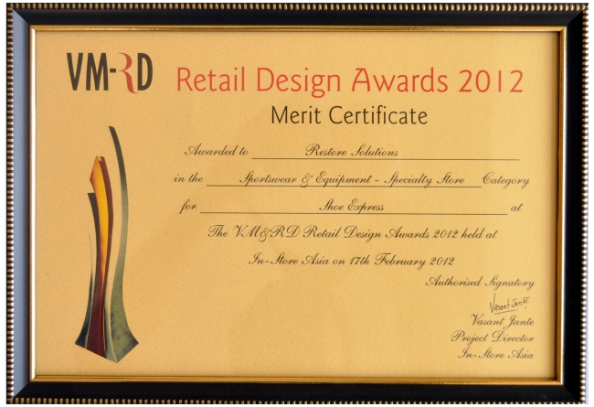 - VMRD RETAIL DESIGN AWARD 2012 – BEST SPORTSWEAR & EQUIPMENT – SPECIALTY STORE – SHOE EXPRESS