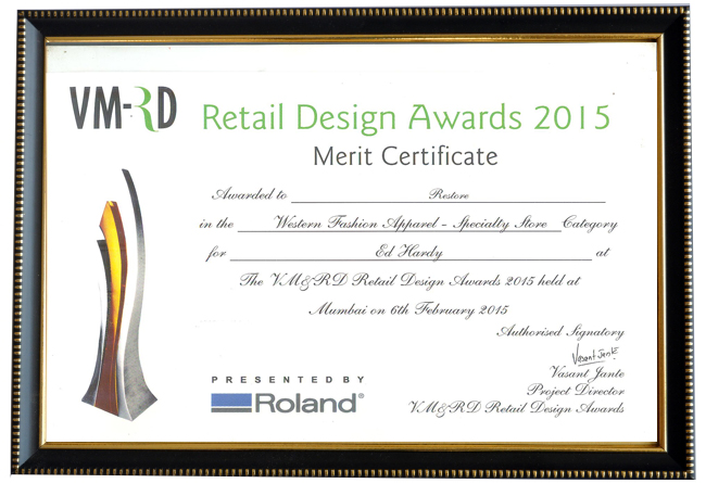 - VMRD RETAIL DESIGN AWARD 2015 – BEST WESTERN FASHION APPAREL – SPECIALTY STORE – ED HARDY