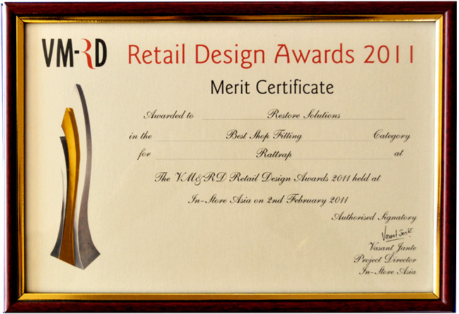 - VMRD RETAIL DESIGN AWARD 2011 – BEST VISUAL MERCHANDISING – RATTRAP